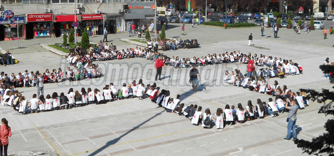Platoul Prefecturii din municipiul Târgovişte a fost astăzi locul de desfăşurare a unor manifestări de celebrare a Zilei Mondiale a Crucii Roşii şi Semilunii Roşii. Sute de copii, elevi, adolescenţi şi voluntari îmbrăcaţi în tricouri albe cu însemnele celei mai cunoscute organizaţii din lume au participat la crearea simbolică a unei crucii şi au împărţit trecătorilor pliante cu materiale informative.