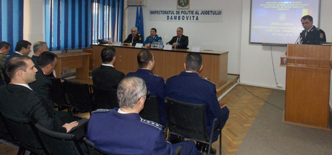 Poliţiştii dâmboviţeni s-au aflat astăzi la ora bilanţului. La întâlnirea de evaluare a activităţii cadrelor IPJ Dâmboviţa, condusă de comisar şef Danil Zepişi, au participat şefii poliţiilor municipale şi orăşeneşti, şefii secţiilor de poliţie rurală, conducătorii serviciilor operative şi neoperative, dar şi ofiţerii specialişti din cadrul IPJ.