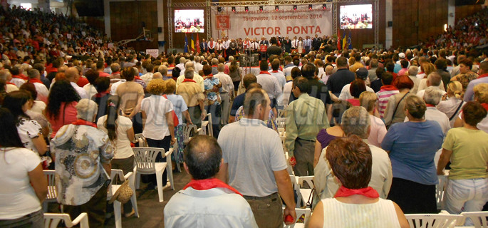 Sala Sporturilor din Târgovişte a fost în această seară neîncăpătoare pentru cei aproape 4.000 de delegaţi veniţi din toate localităţile judeţului pentru a valida, în cadrul conferinţei extraodinare a PSD Dâmboviţa, candidatura premierului Victor Ponta pentru Preşedinţia României. Rezultatul scrutinului electoral intern a fost apoi transmis, în sistem video-conferinţă, către Congresul Naţional PSD, organizat în Ardeal. Preşedintele PSD Dâmboviţa, Adrian Ţuţuianu, a fost desemnat de către conducerea centrală a partidului să vorbească pentru Regiunea Sud Muntenia, în semn de apreciere pentru rezultatele bune obţinute în alegerile europarlamentare din luna mai. Victor Ponta a fost desemnat drept candidatul PSD pentru Cotroceni şi cu votul a 62.831 de delegaţi PSD din regiunea noastră. Au fost împotrivă 59 de delegaţi, iar alţi 127 s-au abţinut.