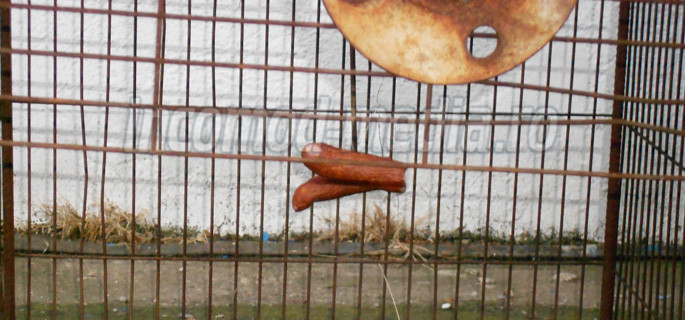 Câinii fără stăpân sunt eliminaţi din nou prin metode extreme la Târgovişte, metode interzise prin lege, metode care ne-au făcut de atâtea ori de râs în Europa civilizată! De data aceasta se întâmplă în zona Oţel Inox. Fie persoane cu puterea de decizie în mână din cadrul societăţii, fie agenţii de pază au hotărât să amplaseze lângă clădirea administrativă de lângă poarta principală, o cursă pentru prins câinii, oarecum camuflată de o tufă de tuia! Au plasat oamenii ceva cârnaţi în interior şi aşteaptă.