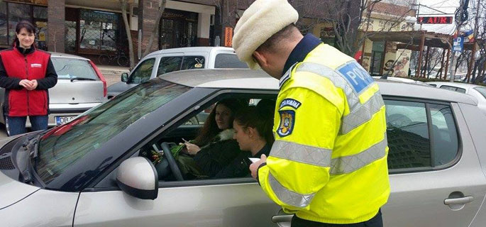 SUD MUNTENIA: Cu ochii pe şoferiţe! Poliţiştii au înlocuit sancţiunile cu flori şi mărţişoare. FOTO