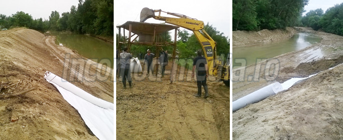 DÂMBOVIŢA: Locuitorii din Răscăieţi au stat în case, iar jandarmii şi pompierii au construit dig în calea apelor